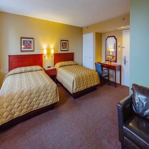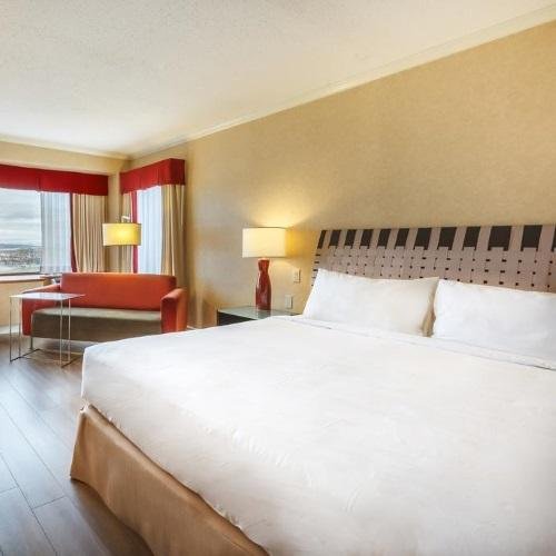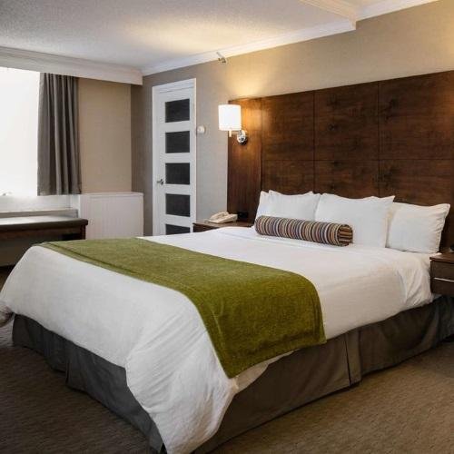 Hôtel Le Concorde is een fijn hotel met een gunstige ligging in Québec City, één van de best bewaarde koloniale steden ter wereld. Het hotel ligt in het hart van Québec en op slechts 15 minuten lopen van het historische centrum, welke ook op de werelderfgoedlijst van UNESCO vermeldt staat. In de omgeving zijn diverse restaurants en terrasjes te vinden. U proeft de Franse sfeer nog overal! De ruime lichte kamers zijn voorzien van airco, flatscreen-tv, bureau, zitje, WiFi en een badkamer met bad en/of douche. Hôtel Le Concorde beschikt over een ronddraaiend op de bovenste verdieping, waarbij u kunt genieten van schitterende uitzichten over Québec City. In het gezellige binnenzwembad, omgeven door palmbomen, kunt u heerlijk genieten en ontspannen. Het hotel beschikt over een privé parkeergarage (parkeerkosten ca. CAD25 per dag).De staking bij Hotel Le Concorde is aan de gang en er wordt over onderhandeld. De volgende diensten blijven getroffen: beperkte hotelgastenservice en verminderde schoonmaak. Schone handdoeken, koffie en andere items kunt u afhalen bij de receptie tijdens uw verblijf.