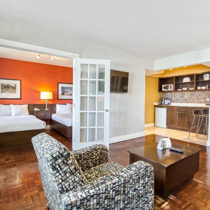 De kamers zijn voorzien van volledig ingerichte kitchenette en afgescheiden woongedeelte. Daarnaast beschikken ze over thee- en koffiefaciliteiten, flatscreen-tv, airco en een badkamer met bad of douche, toilet en föhn. Het hotel beschikt over een privé parkeerplaats (parkeerkosten ca. CAD 30 per dag).