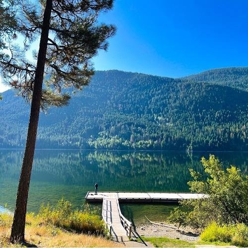 Vandaag verlaat u de bergachtige Kootenays en rijdt u naar de regio rond Osoyoos, bekend om zijn milde klimaat, wijngaarden en meren. De route loopt parallel aan de Amerikaanse grens, langs bergpassen zoals Bonanza Pass en Gold Canyon, waarbij het landschap langzaam overgaat van bergen naar zacht glooiende heuvels.