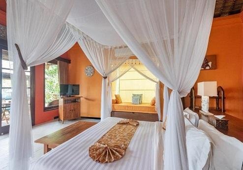 Een ruime, maar liefst 55 m2, villa met een voor Balinese begrippen 'gezegend' uitzicht op de rijstvelden. Het heeft een privéterras waar u heerlijk kunt relaxen en een semi open lucht badkamer met bad. Verder behoren tot de faciliteiten: gratis WiFi, minibar, koelkast, koffie- en thee faciliteiten, klamboe, zitje, TV, airco, kluis en telefoon.