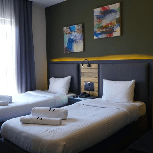 Aitch Boutique Hotel is gelegen in Madaba, de stad van de mozaïeken. Het hotel geeft een mooi uitzicht over de omgeving. Na een lange reisdag koelen jullie heerlijk af in het (seizoensgebonden) zwembad. In het restaurant kunnen jullie terecht voor het diner en hier wordt ook dagelijks ontbijt geserveerd. De comfortabele kamers bieden airco, koffie- en theefaciliteiten, minibar, kluisje, tv en een eigen badkamer. Er is gratis WiFi beschikbaar in de gehele accommodatie.