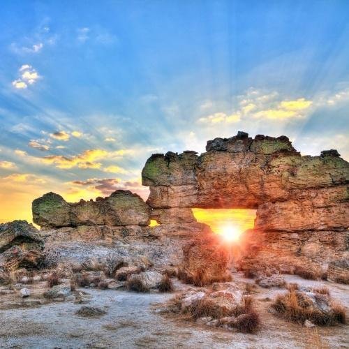 Stop bij het ‘raam van Isalo’ voor zonsondergang