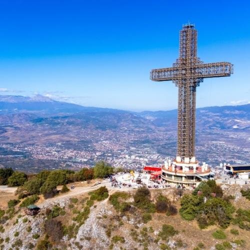 Vandaag brengt u een bezoek aan de Vodno-berg, een groene oase net buiten de stad. Boven op de berg geniet u van een schitterend uitzicht over Skopje, de rivier de Vardar en de omliggende bergen. Het iconische Millenniumkruis, een van de grootste kruisen ter wereld, vertelt het verhaal van de christelijke geschiedenis in de regio. U kunt er rustig rondwandelen en foto’s maken vanaf verschillende uitkijkpunten. Voor wie het wil, is het ook mogelijk om de top te bereiken met de kabelbaan, wat een extra spectaculair uitzicht biedt. Na dit bezoek keert u weer terug naar Skopje, waar u de middag vrij heeft om op eigen tempo de stad verder te verkennen.