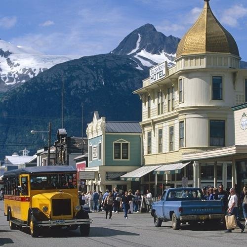 Afhankelijk van het seizoen kunt u kiezen uit routes van verschillende lengtes, die optioneel via de rederij geboekt kunnen worden. De trein vertrekt direct vanaf de pier, op ongeveer 20 minuten lopen van het stadscentrum van Skagway. Hier vindt u overal sporen van de goudkoorts terug. Een groot deel van de stad maakt deel uit van het Klondike Gold Rush National Historical Park, waar rangers gratis wandeltochten aanbieden door het historische district. Skagway biedt ook een rijke verzameling galerieën, unieke winkels en restaurants die verse zeevruchten serveren, direct uit de nabijgelegen wateren.