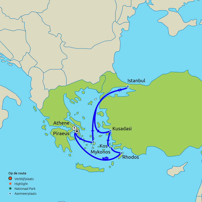 Het schip meert vroeg in de ochtend aan in de haven van Piraeus. Na een vroeg ontbijt wordt er in groepen (op kleur) ontscheept. De volgorde is afhankelijk van verdere reisplannen en vluchttijden. Zodra uw kleur wordt omgeroepen kunt u van boord. Met een transfer van de rederij wordt u van de cruiseterminal in Piraeus naar de luchthaven in Athene gebracht.