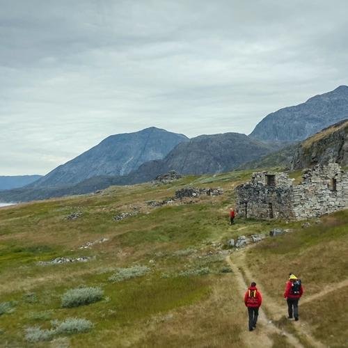 Vanuit Qaqortoq maakt u een Zodiac-expeditie naar de Hvalsey-ruïnes, de meest prominente Noorse archeologische site van Groenland. Slechts twaalf mijl langs de Hvalseyjarfjord liggen de overblijfselen van de Vikingkerk en grote boerderijen, die herinneren aan de nederzetting van de Noormannen van de 10e tot de 15e eeuw. Het expeditieteam vertelt over het leven van de kolonisten en hun handel met de inheemse Thule-bevolking, en u leert over het beroemde huwelijk dat in 1408 plaatsvond, het laatste schriftelijk gedocumenteerde Noorse evenement in Groenland. Terwijl u langs het fjord vaart, ziet u weelderige bloemenweiden en krijgt u een beeld van het vredige leven dat hier ooit bloeide.