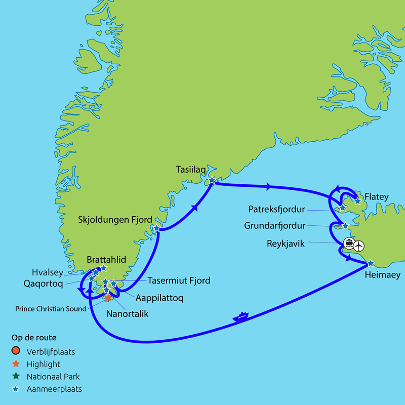 Voordat u naar het schip gaat kunt u een groot deel van de ochtend nog in Reykjavik besteden. In de late namiddag wordt u met een transfer naar de Skarfabakki cruiseterminal gebracht en scheept u in aan boord van uw expeditiecruise. Na een verplichte maar korte veiligheidsinstructie, begint het avontuur écht.