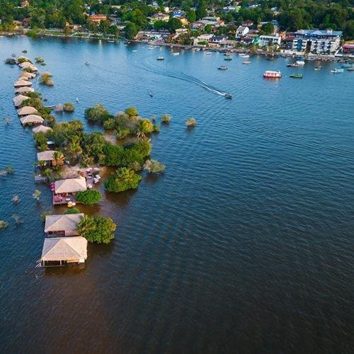 Aan de oevers van de Tapajós-rivier ligt het paradijselijke Alter do Chão, ook wel het Caribisch gebied van Brazilië genoemd dankzij haar witte zandstranden en kristalheldere water. Witte zandbanken rijzen op uit de rivier, omringd door smaragdgroen regenwoud, terwijl het dorp zelf een relaxte, bijna Caribische sfeer ademt.