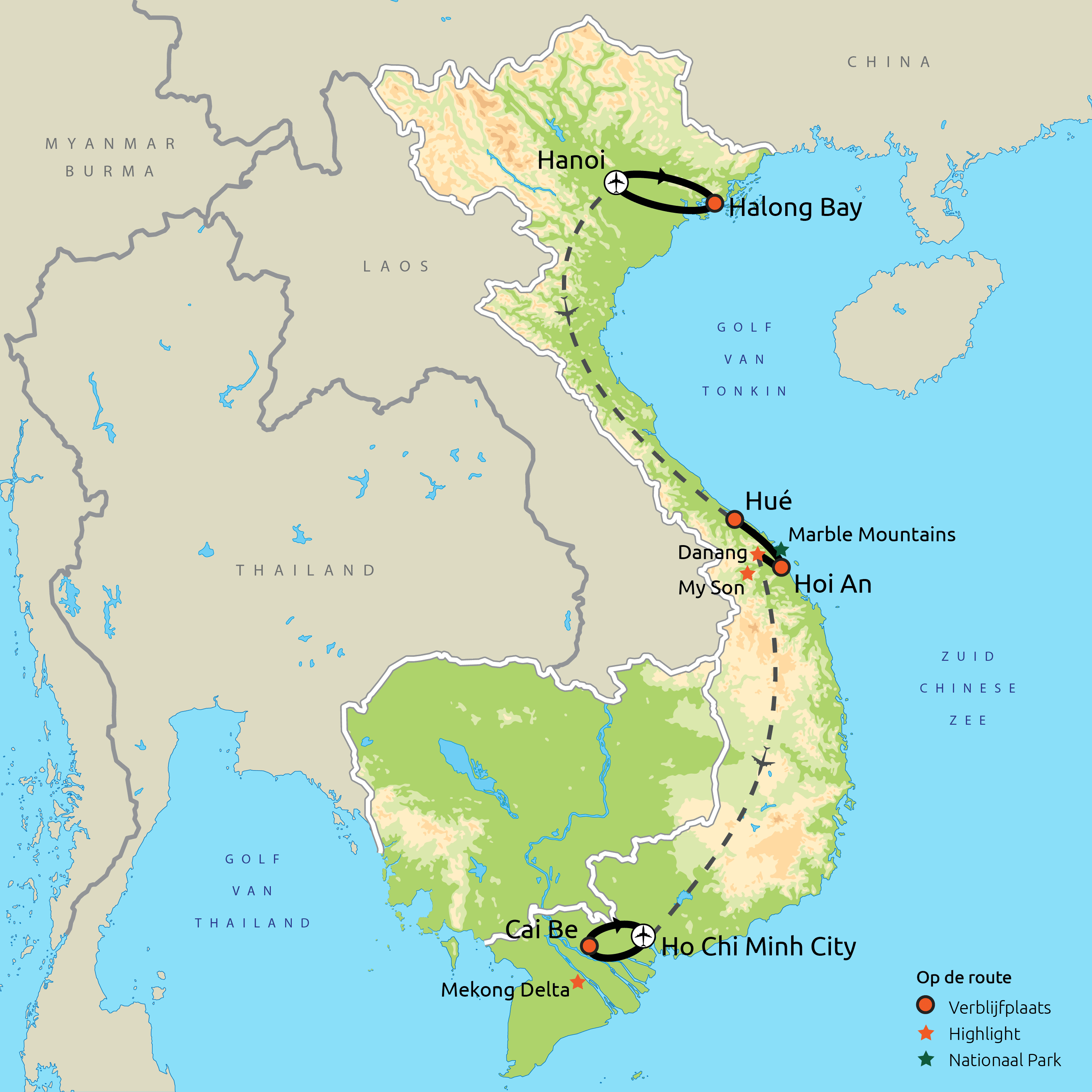 Binnen twee weken brengt deze rondreis u langs dé hoogtepunten van Noord- tot Zuid-Vietnam en laat u in korte tijd kennismaken met de schoonheid en diversiteit van dit prachtige land. U rijdt in een riksja door koloniaal Hanoi, bewondert de fabelachtige Halong Bay vanaf een traditionele jonk, ontdekt het charmante Hoi An met de fiets die voor u klaarstaat en reist per binnenlandse vlucht naar keizerstad Hué. U sluit de reis af met een ontdekkingstocht per sampan door de Mekong Delta en een verblijf in het meeslepende Ho Chi Minh City. Wilt u nog meer beleven? Bekijk de verlengingsmogelijkheden naar het populaire Phan Thiet of het mooie Sapa!