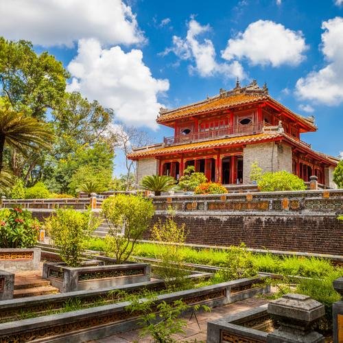 U start de dag op de kleurrijke Dong Ba Markt waar u even kunt rondstruinen. Het is de grootste markt van Hué, waar van alles te koop is! Vervolgens maakt u een boottocht over de Parfum Rivier (Song Huong-rivier) en leert u het keizerlijke verleden van Vietnam kennen. Kijk tijdens het varen goed om u heen, zodat u een beeld krijgt van de lokale bevolking die in sampans op het water leven. U bezoekt de Thien Mu Pagode (ook wel ‘Linh Mu’), één van de oudste pagodes van Vietnam. Deze werd in één klap beroemd toen één van de monniken zichzelf in 1963 in Ho Chi Minh City in brand stak.