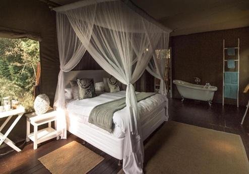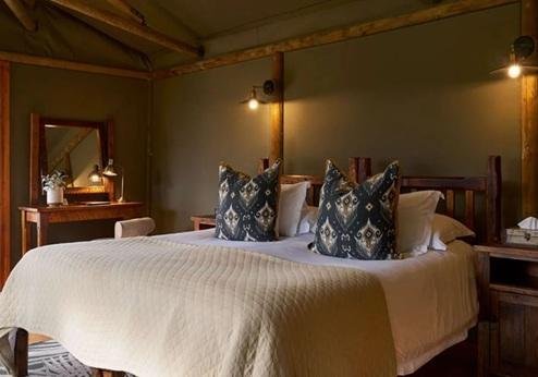 Ngama Tented Safari Lodge is een kleine verrassing in het wild. Het Private Game reserve waar de lodge ligt staat bekend om zijn uitstekende mogelijkheid om veel wild te zien. Met maar 6 mooie safari-tenten en charmante inrichting is dit echt een verblijf voor mensen die iets persoonlijks en kleinschalig zoeken. De lodge ligt midden in het Guernsey Private Game Reserve op nog geen 40 km van het beroemde Krugerpark. Het Guernsey Private Game Reserve is de 'thuis' van de Big Five en heel veel wilde dieren. De lodge beschikt over een ruime 'hoofdtent' waar de receptie en de lounge zich bevinden. Hier wordt 's ochtends ook het ontbijt geserveerd. Vanuit hier loopt u zo het dek op met uitzicht op het water. Hier is het heerlijk vertoeven in de schaduw en 's avonds wordt hier ook het diner geserveerd. Tevens is er een klein zwembad voor wat afkoeling tussen de safari's. De safaritenten zijn zeer smaakvol ingericht en liggen verspreid rond het water en hebben allemaal een groot dek, waar u kunt genieten van de rust (en soms dierengeluiden). De tenten zijn ruim en voorzien van hemelbedden, badkamer met bad en douche en elektriciteit. Geniet van de persoonlijke service en mooie accommodatie!