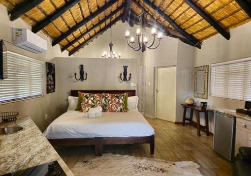 Een kleurrijk in Afrikaanse stijl opgezette lodge op steenworp afstand van het beroemde Krugerpark. De unieke rondavels, het heerlijke zwembad en vele safari mogelijkheden maken dit tot een uitstekende lodge. De lodge ligt op circa 30 km van de Orpen gate van het bekende Kruger Nationaal Park. De lodge beschikt over een receptie, groot zwembad met gezellige bar en ligbedden en goed buffetrestaurant met lekkere lokale specialiteiten. Er is gratis WiFi in de openbare ruimtes. De 42 eenvoudige kamers zijn gelegen in rondavels en voorzien van een badkamer met douche en kleine veranda. Alle rondavels hebben een ventilator, muskietennet en zitje op het terras, vanwaar u met regelmaat klein wild voorbij ziet lopen. Er zijn driepersoonskamers en familiekamers, die uitermate geschikt voor families met kinderen.