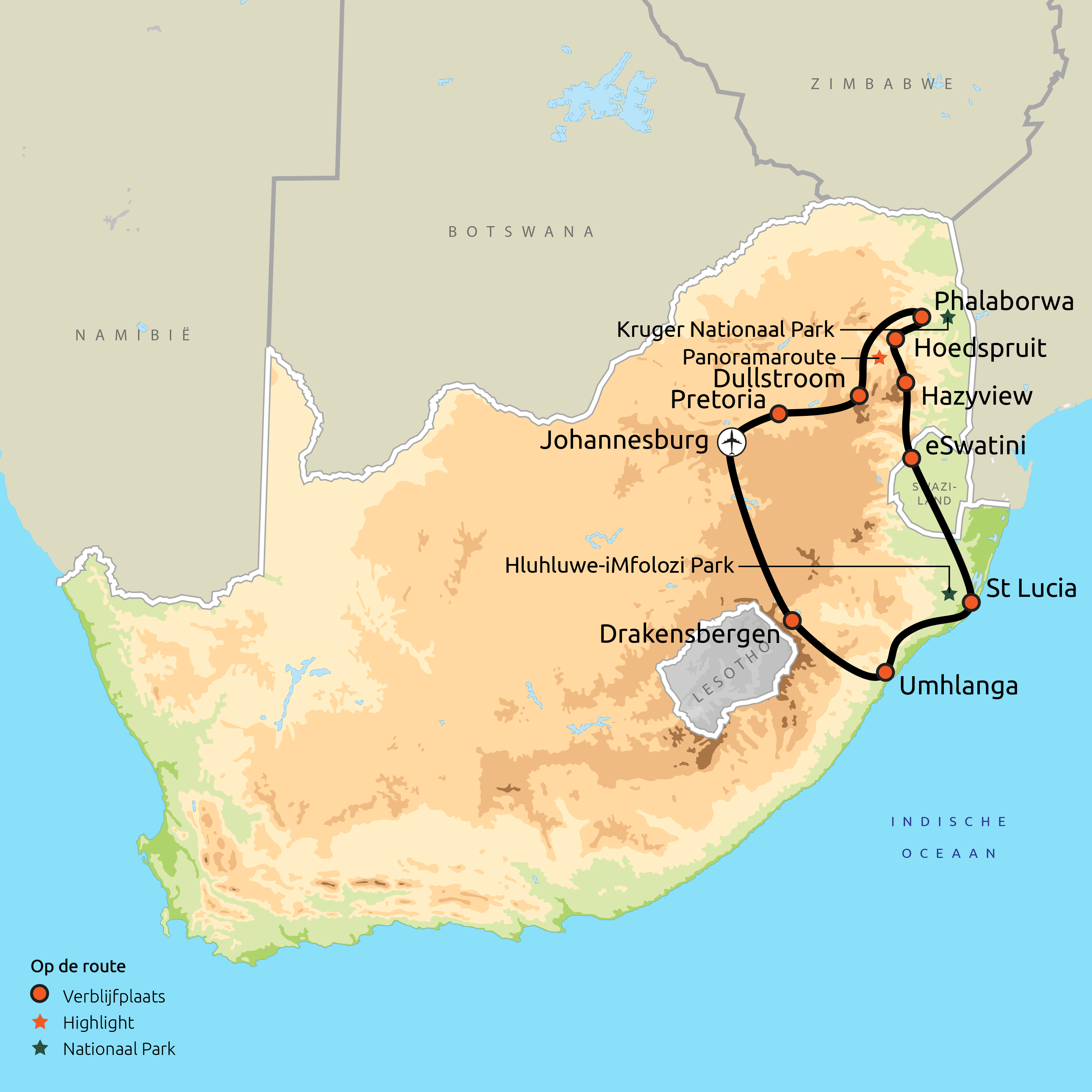Een zeer verzorgde lodge gelegen in de Ezulweni-vallei met een prachtig uitzicht op de bergen. In de directe omgeving kunt u prachtige wandelingen maken en mountainbiken. Het is een uitstekende locatie midden in eSwatini (Swaziland)! In de directe omgeving zijn diverse activiteiten te boeken. De mooie lodge heeft een hoofdgebouw met receptie, lounge, goed restaurant, bar met groot terras en een overweldigend uitzicht en een lekker zwembad. De verzorgde kamers zijn voorzien van airconditioning, ventilator, tv, telefoon, koffie/theefaciliteiten en een badkamer met douche/badcombinatie.